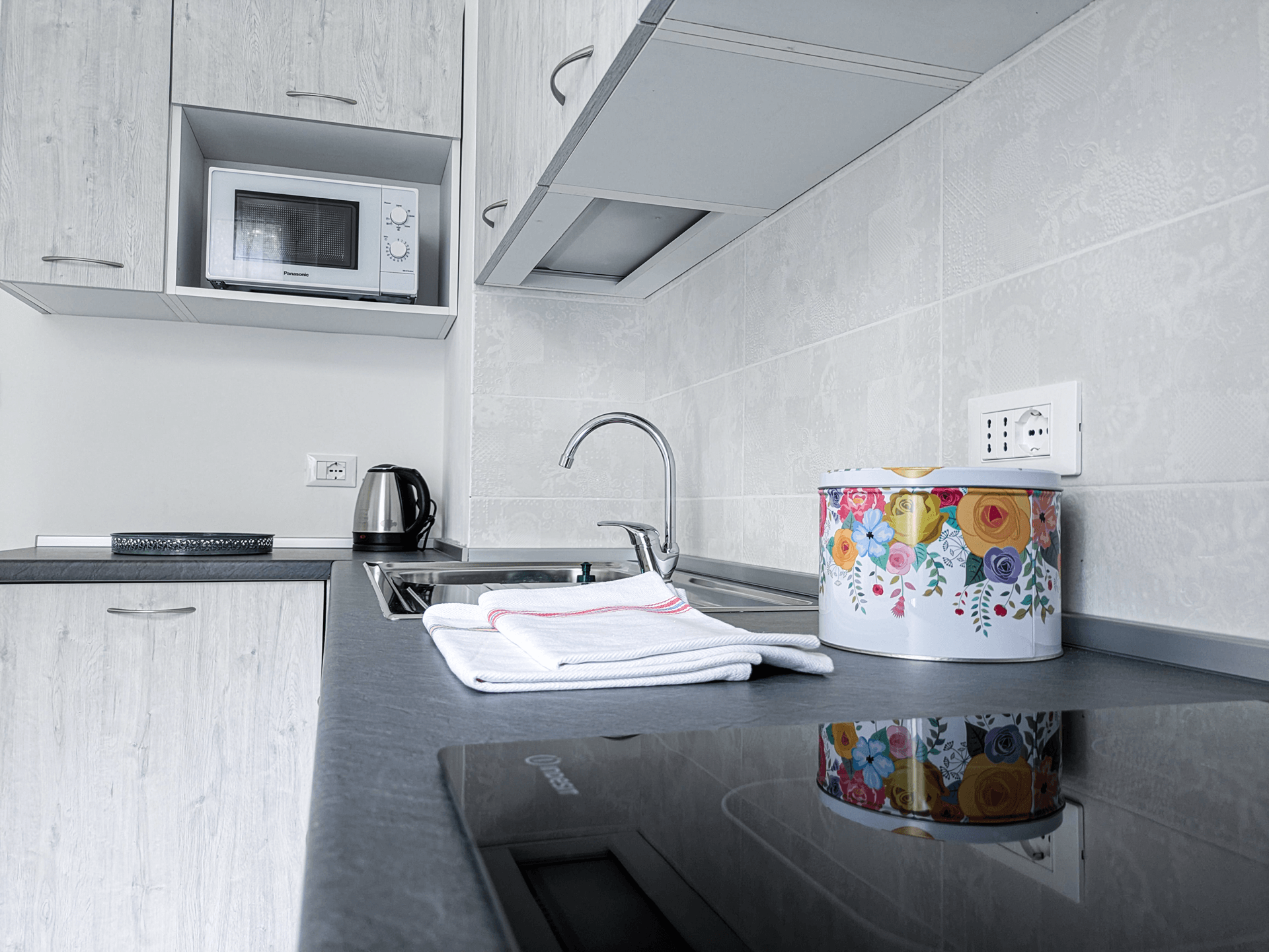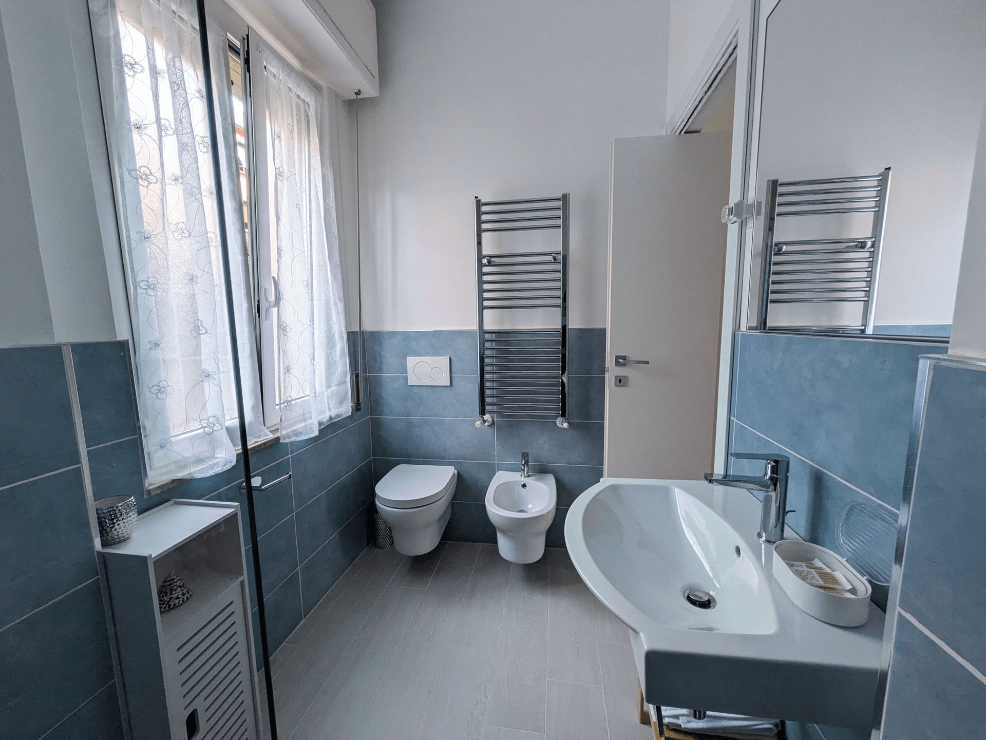 La cucina è completamente attrezzata con piano cottura a induzione, lavastoviglie, frigorifero e un ampio piano di lavoro, ideale per chi ama cucinare anche in vacanza. Completano l’alloggio un bagno con doccia, un ripostiglio con lavatrice e un posto auto privato, accessibile anche con la ZTL attiva, per garantirti massima libertà di movimento.